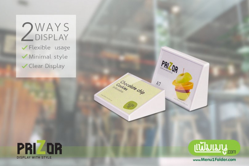 ป้ายอะคริลิค Prizor เหมาะกับใช้วางตามตู้ ในร้านอาหาร คาเฟ่ ร้านบุฟเฟ่ต์ หรือ ในโรงแรม ป้ายอะคริลิค Prizor มี 2 ขนาด ทั้งขนาด A7 และ A8 ขึ้นอยู่กับ ความเหมาะสมการใช้งาน