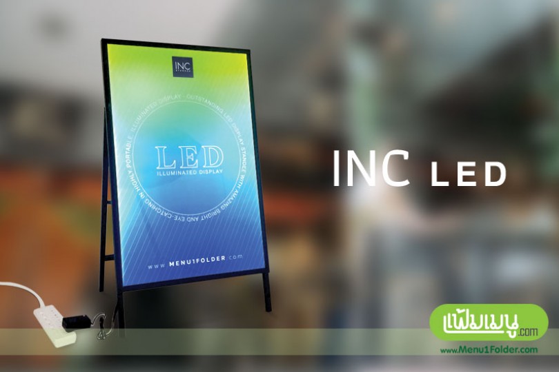 ป้ายไฟตั้งหน้าร้าน ป้ายไฟ LED รุ่น INC LED วัสดุทำจากโลหะ เคลือบดำ แข็งแรง มีฝาปิดด้านบน สามารถปรับเปลี่ยนแผ่นป้ายด้านในได้ สามารถใข้งานในที่ Indoor ภายในอาคาร หรือ ร้านอาหาร