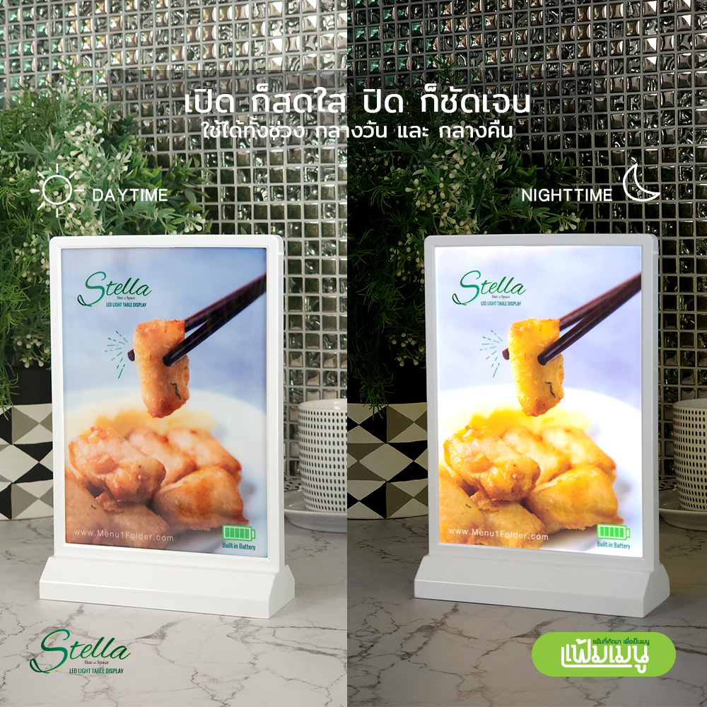 - ป้ายไฟ LED ตั้งโต๊ะ รุ่น Stella ขนาด A4