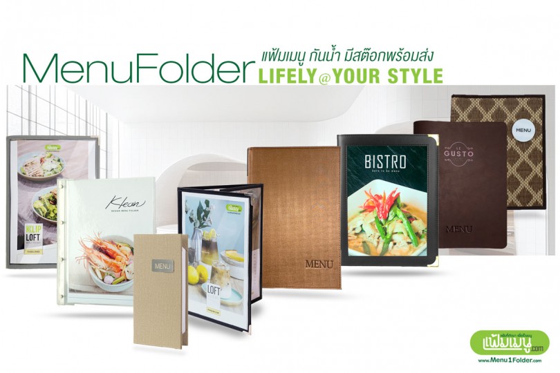 แฟ้มเมนูอาหาร มีสต๊อกพร้อมส่ง เพิ่มพลังการสื่อสาร อย่างมีสไตล์ ให้กับร้านอาหารทั่วไทย หลายรูปแบบทั้ง แฟ้มเมนูปกหนัง ปกใส ปกหนังผ้าแคนวาส ปกหนังลายไหม แฟ้มเมนูอะคริลิก + ป้ายตั้งโต๊ะ + ป้ายตั้งหน้าร้าน ซึ่งเลือกวัสดุที่ทนทาน กันน้ำ เพิ่มหน้าได้ ตามสโลแกน "แฟ้ม" ที่เกิดมาเพื่อเป็น "เมนู"