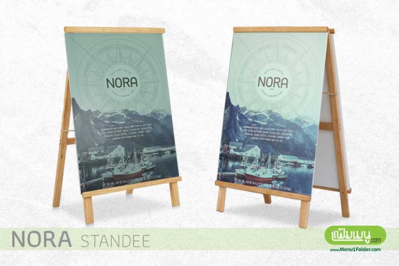 ป้ายไม้ตั้งหน้าร้าน A-Stand รุ่น NORA โครงทำจากไม้ มีน้ำหนักเบา ตัวป้ายพิมพ์ด้วย Inkjet Sticker บน PP Board คุณภาพสูง สีสวย ภาพคมชัด มี ทั้งแบบ หน้าเดียว และ แบบหน้าหลัง ดังนี้