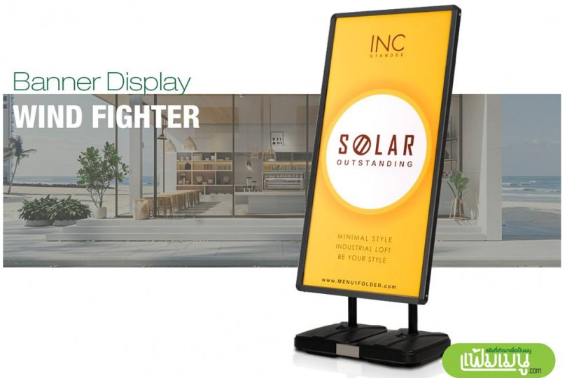 ป้ายตั้งหน้าร้าน INC Solar ใช้ Outdoor ในพื้นที่กลางแจ้งได้ดี ทำจากอะลูมิเนียมดำ น้ำหนักเบา ไม่เป็นสนิท เหมาะสำหรับร้านอาหาร ร้านค้า ร้านกาแฟ ป้ายร้านเสื้อผ้า ป้ายสำหรับงานอีเว้นท์ ต่างๆ